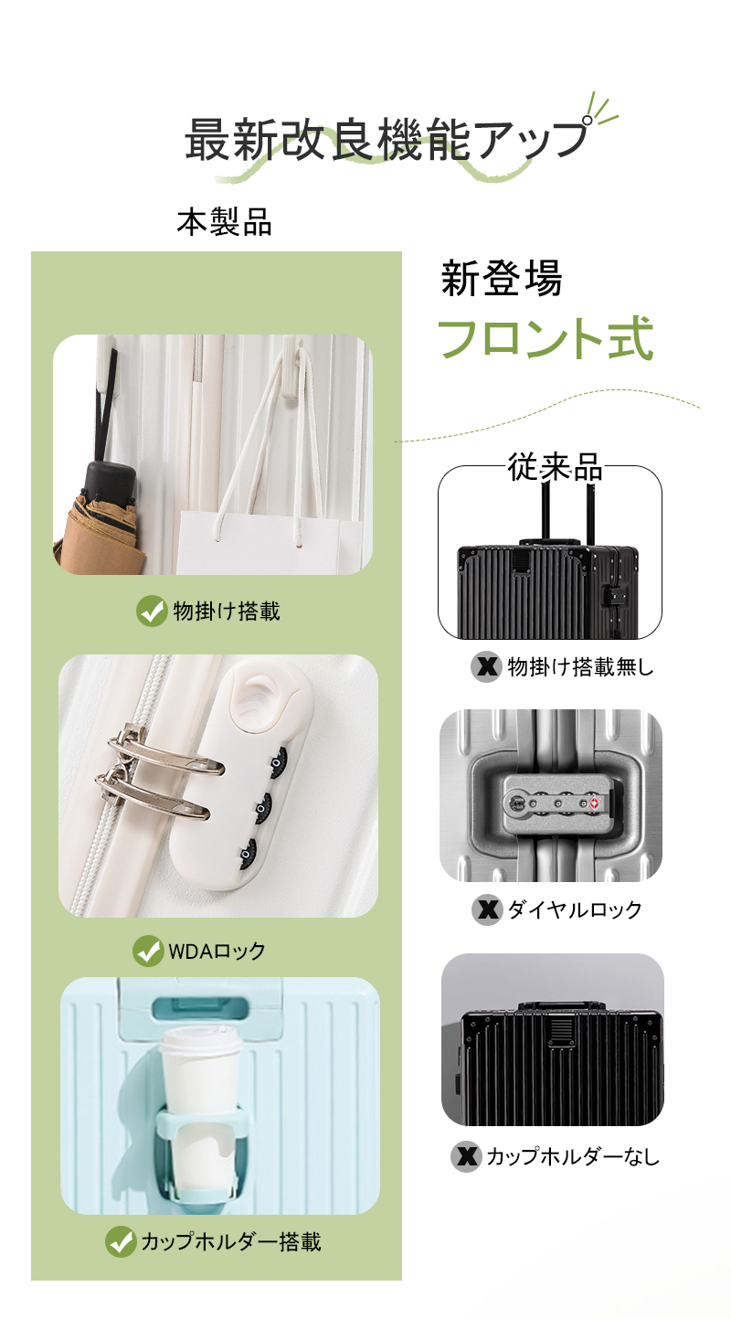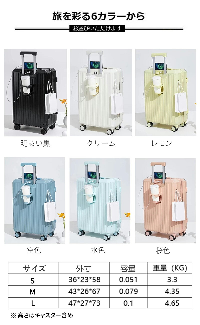 スーツケース キャリーケース mサイズ 軽量 大容量 機内持ち込み ドリンクホルダー 静音 おしゃれ 小型 かわいい キャリーバッグ トランクケース ダブルキャスター usbポート付き 3泊 sサイズ