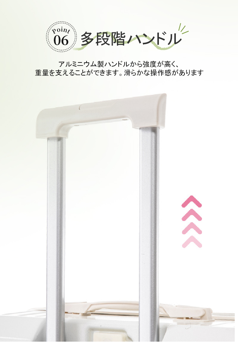 多段階調整キャリーバー/360°回転静音ダプルキャスター搭載