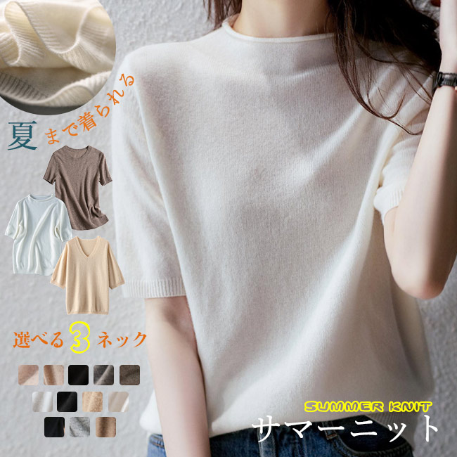 サマーニット 半袖 ハイゲージニット レディースファッション 豊富 M L XL 2XL ホワイト(Vネック) ブラック(Vネック) ブラウン(Vネック) グレー(クルーネック) ブラック(クルーネック) ブラウン(クルーネック) ベージュ(クルーネック) キャメル(クルーネック) ブルー(クルーネック) イエロー(クルーネック) ラセットブラウン(クルーネック) ローシェンナ(クルーネック) ホワイト(カールネック) グレー(カールネック) ブラック(カールネック) ブラウン(カールネック)