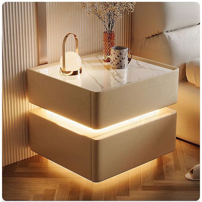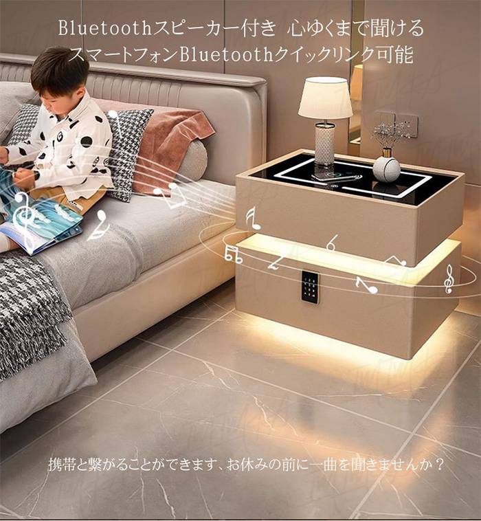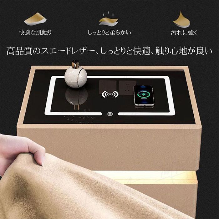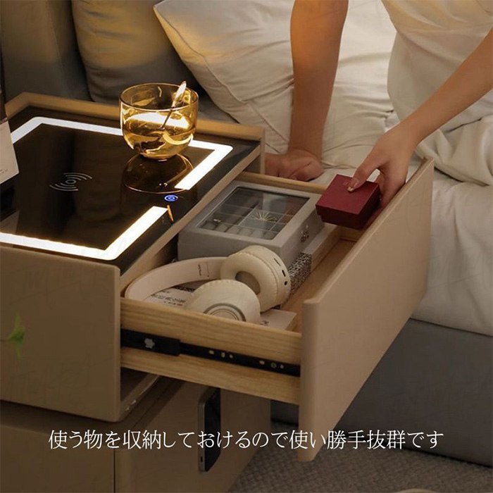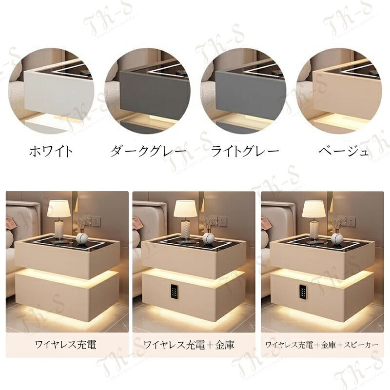 サイドテーブル ナイトテーブル 多機能 ホワイト ダークグレー ライトグレー ベージュ ワイヤレス充電 ワイヤレス充電+金庫 ワイヤレス充電+金庫+スピーカー