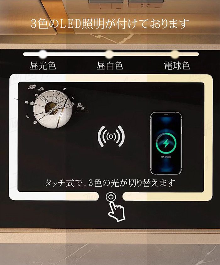 3色のLED照明が付けております。タッチ式で、3色の光が切り替えます。