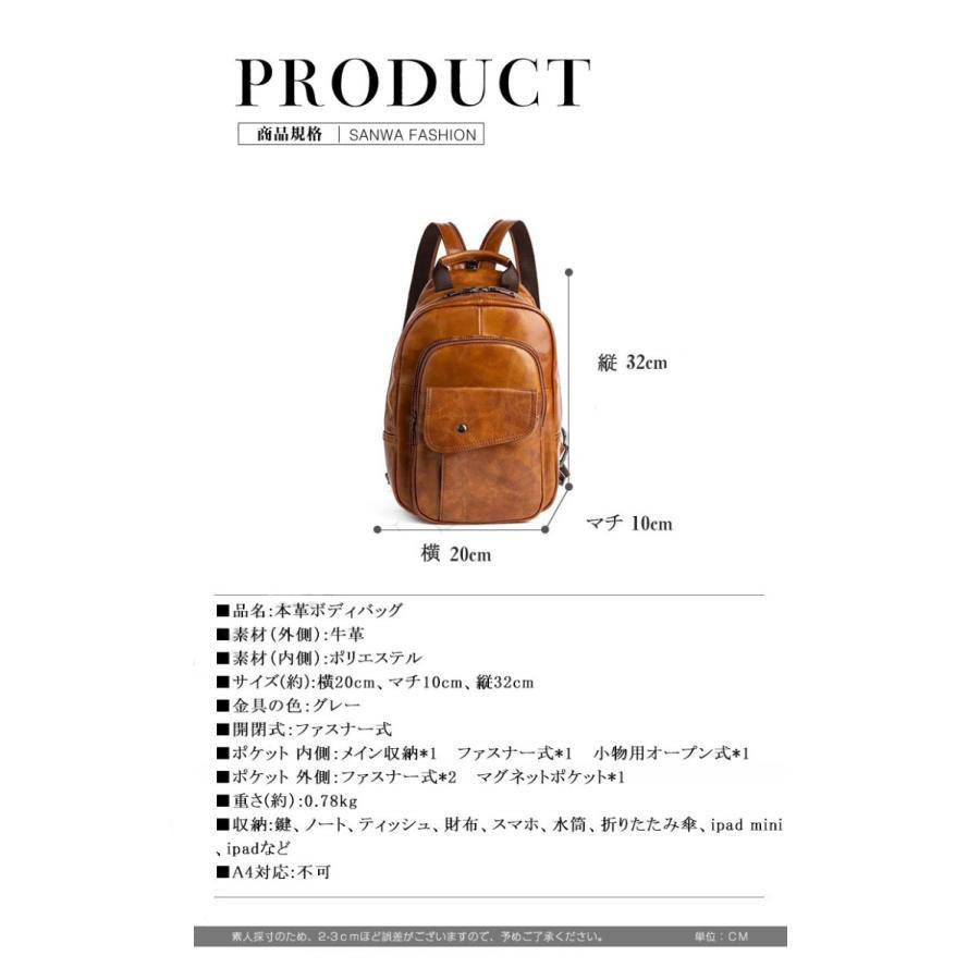 ボディバッグ メンズ 本革 レザー 最上級の天然牛革 2way レザーバッグ ショルダーバッグ ワンショルダー 大きめ リュックタイプ ボディバック ビジネス 斜めがけ
