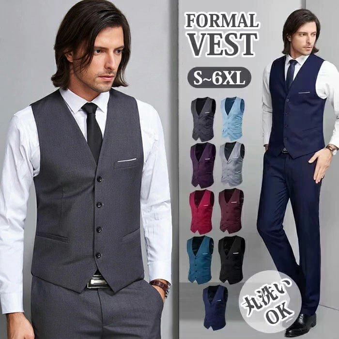 S~6XL ベスト メンズ スーツ フォーマル スリム 9色展開 男性 Vネック ビジネス ジレ ジレメンズ 結婚式 ビジネスチョッキ オフィス