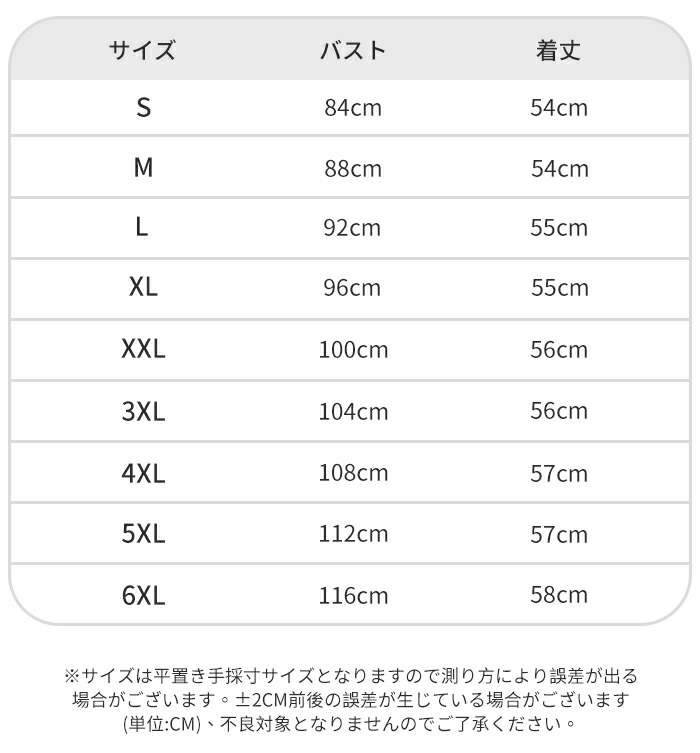 また、Tシャツやポロシャツなどのアパレルアイテムは、プリント後に乾燥やヒートプレスを行うため、1~3cm程度縮むことがあります。ご了承いただけますようお願いいたします。