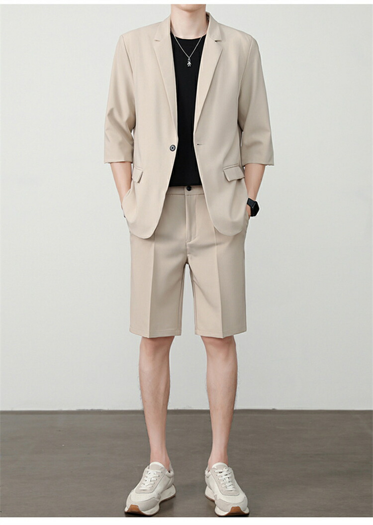 サマースーツ セットアップ 七分袖 ス スーツ セットアップ スーツ 人気 M L XL 2XL 3XL 黒 ベージュ コーヒー ライトグレー ダークグレー