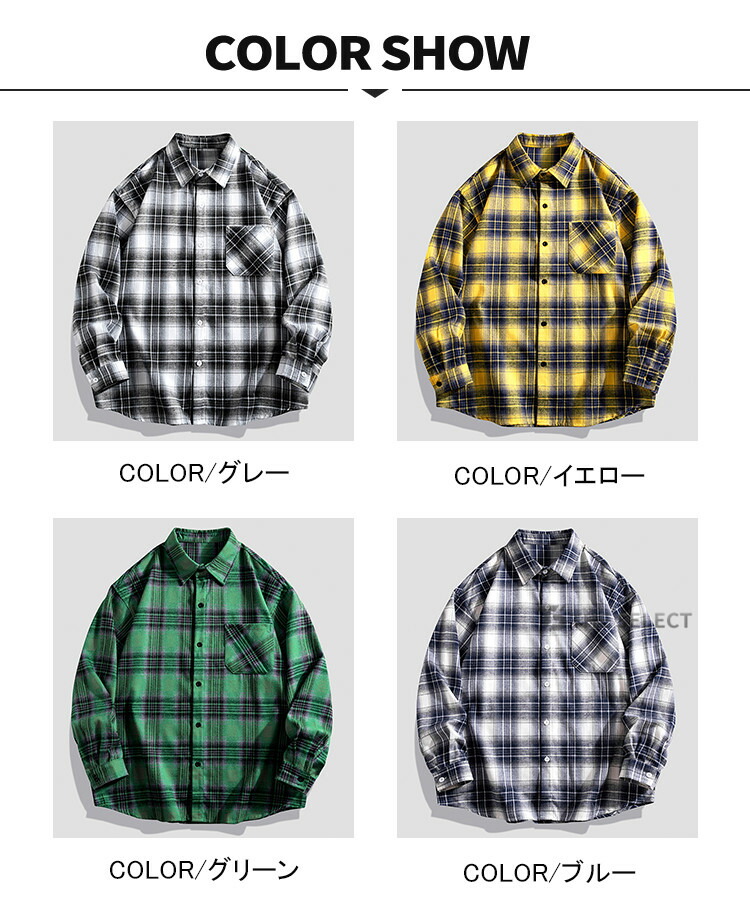 チェックシャツ メンズ 長袖 シャツ メンズファッション 続々入荷中 M L XL 2XL 3XL グレー イエロー グリーン ブルー