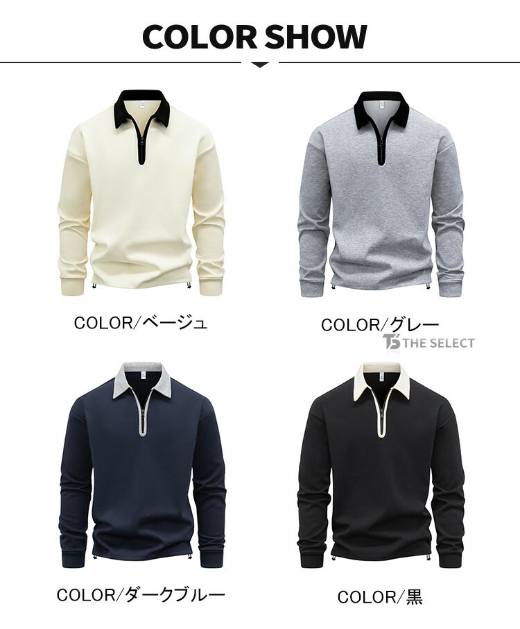 ハーフジップ メンズ ポロシャツ トレ トップス ポロシャツ 特集 M L XL 2XL 3XL 4XL ベージュ グレー ダークブルー 黒