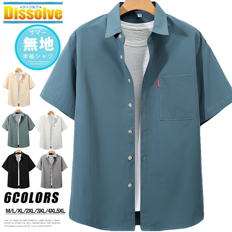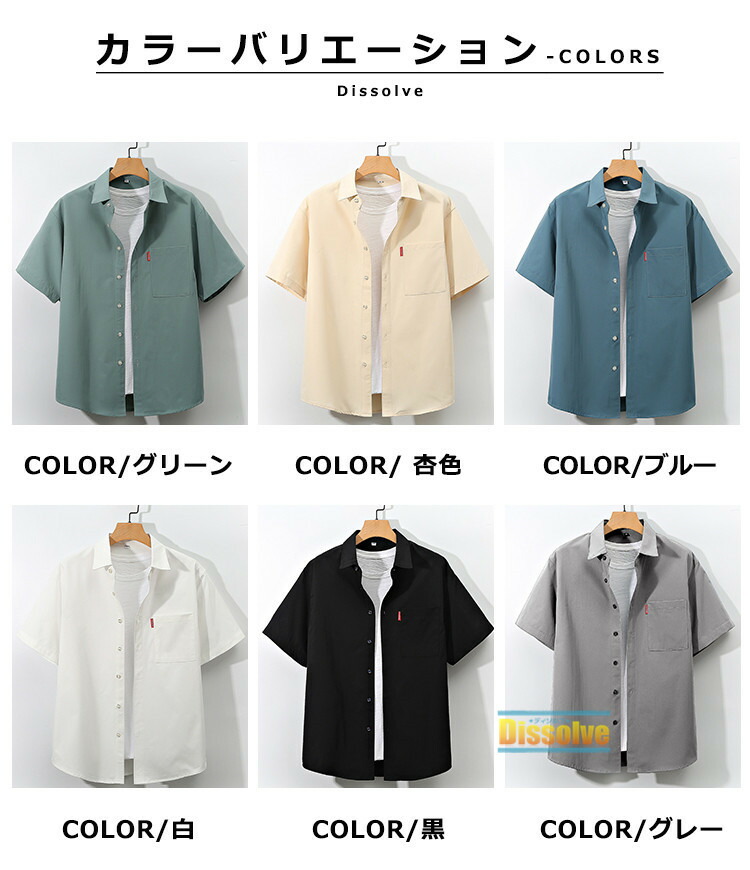 半袖シャツ メンズメンズ 無地シャツ トップス カジュアルシャツ 早い者勝ち M L XL 2XL 3XL 4XL 5XL グリーン 杏色 ブルー 白 黒 グレー
