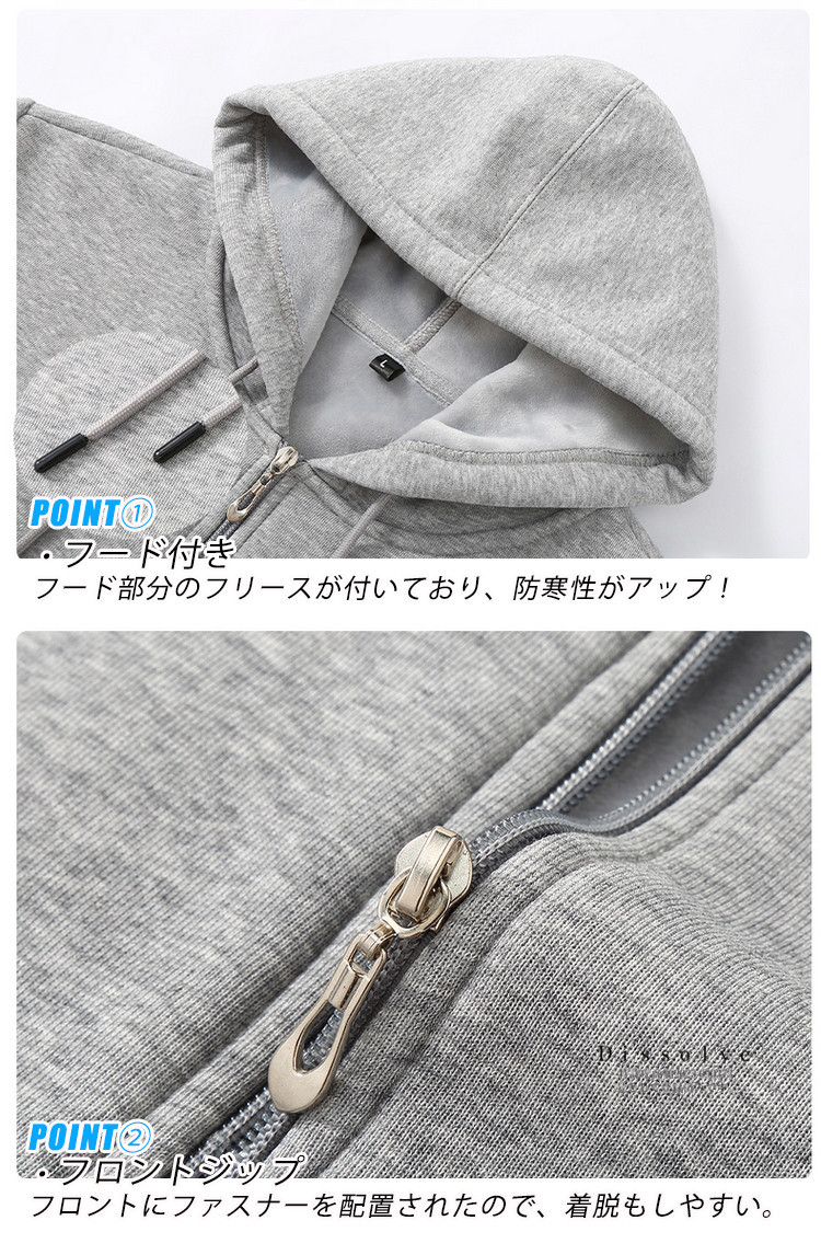 ※このパーカーは、内側に柔らかなボアを採用しており、保温性に優れています。春から冬にかけての長いシーズンで活躍します。