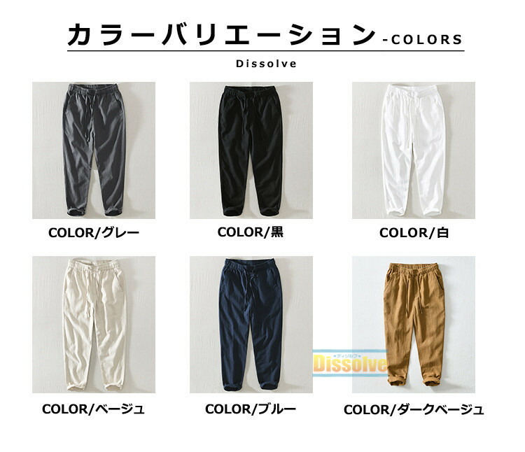 麻パンツ 無地パンツ メンズ 九分丈パ ズボン パンツ 新登場! M L XL 2XL 3XL 4XL グレー 黒 白 ベージュ ブルー ダークベージュ