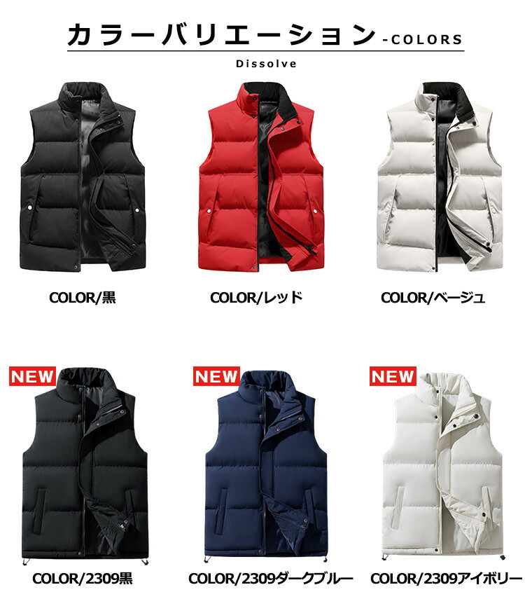 ダウンベスト メンズ 中綿ダウン 中綿 メンズファッション 続々入荷中 M L XL 2XL 3XL 4XL 5XL 黒 ベージュ レッド 2309黒 2309ダークブルー 2309アイボリー