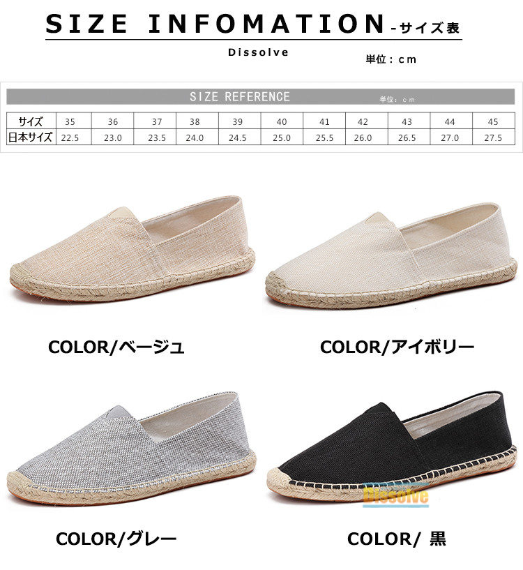 エスパドリーユ メンズ スリッポン 靴 35(22.5cm) 36(23.0cm) 37(23.5cm) 38(24.0cm) 39(24.5cm) 40(25.0cm) 41(25.5cm) 42(26.0cm) 43(26.5cm) 44(27.0cm) 45(27.5cm) ベージュ アイボリー グレー 黒