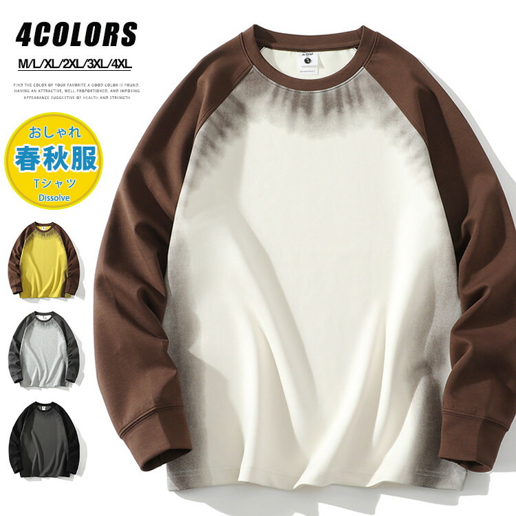 Tシャツ メンズ おしゃれ 長袖Tシャ トップス Tシャツ カットソー 通販 M L XL 2XL 3XL 4XL イエロー 杢グレー ダークグレー アイボリー