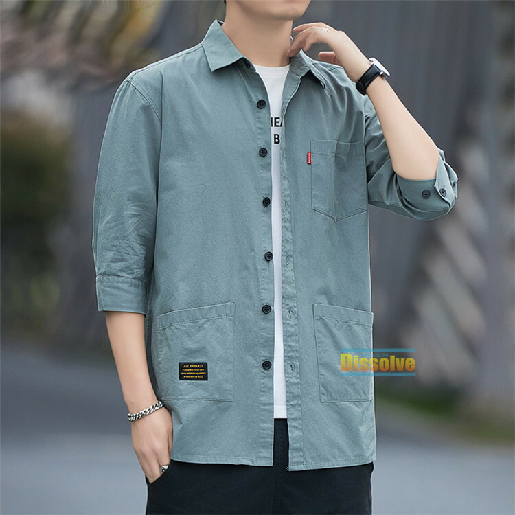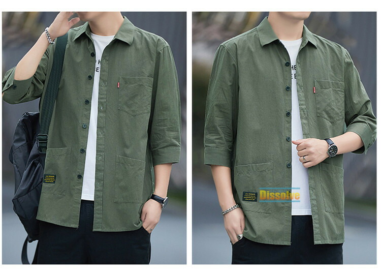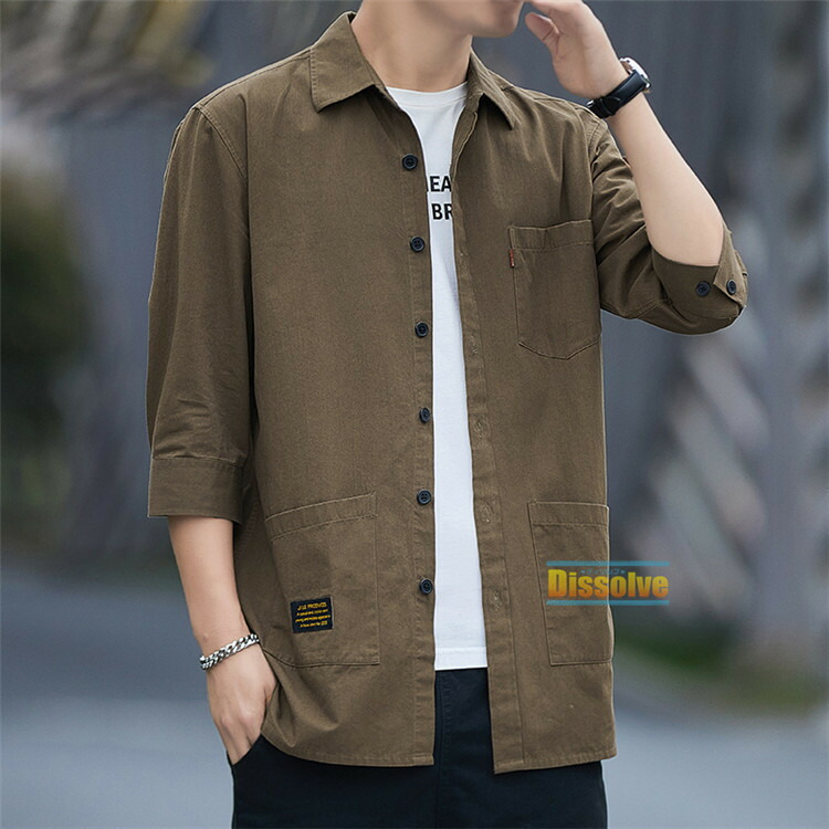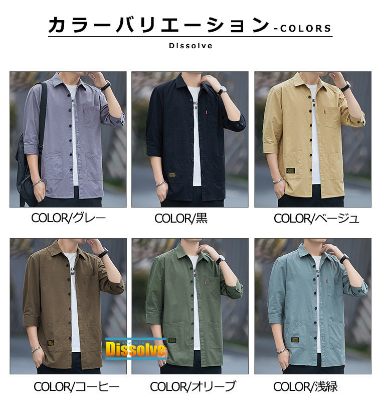 七分袖シャツ ミリタリーシャツ メンズ メンズファッション 新作 M L XL 2XL 3XL 黒 ベージュ コーヒー オリーブ 浅緑