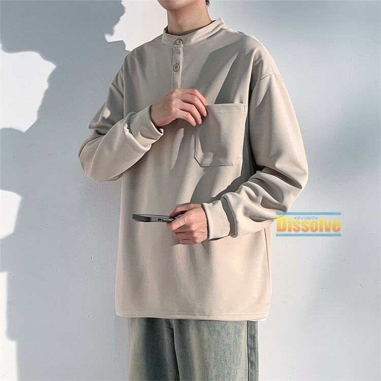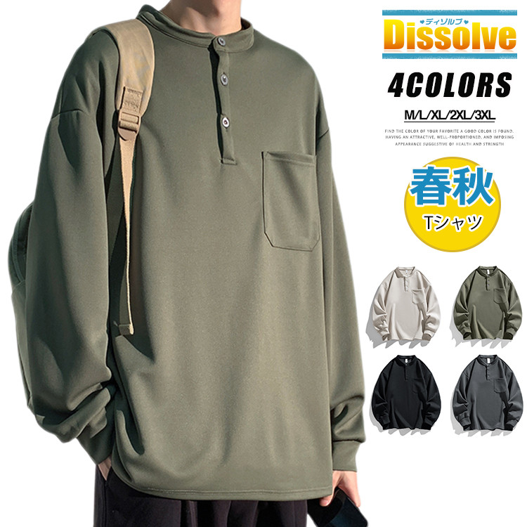 ヘンリーネックTシャツ 長袖Tシャツ メンズファッション 人気 M L XL 2XL 3XL グリーン グレー 黒 ベージュ
