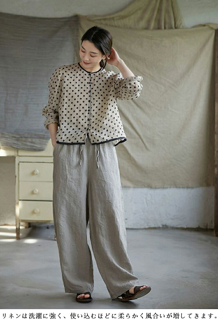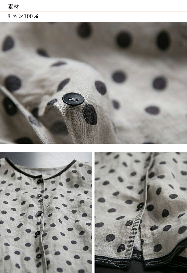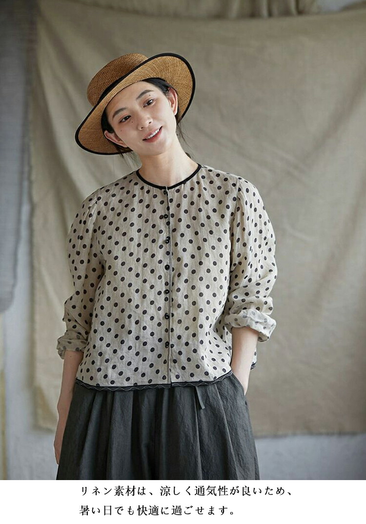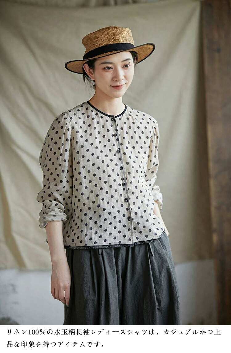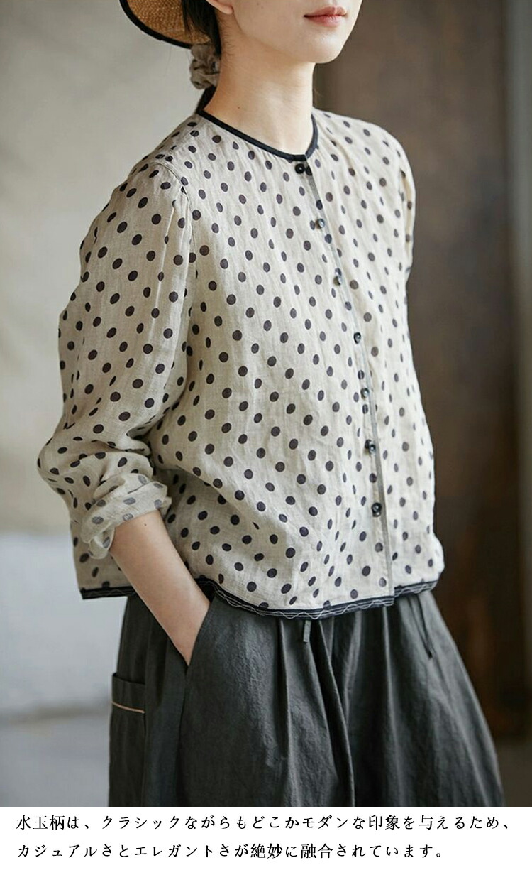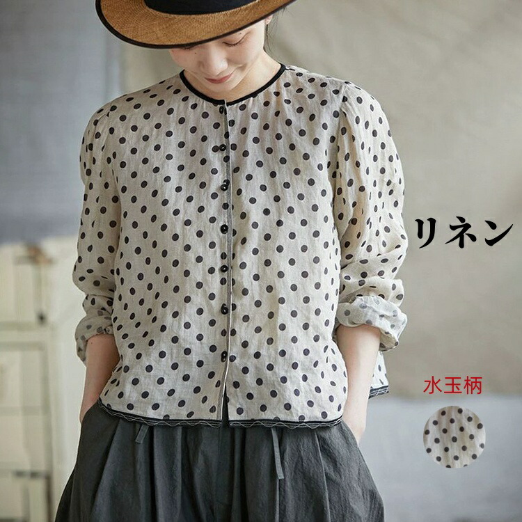 リネンシャツ 水玉柄 長袖シャツ レデ トップス シャツ ブラウス 続々登場 S M L XL
