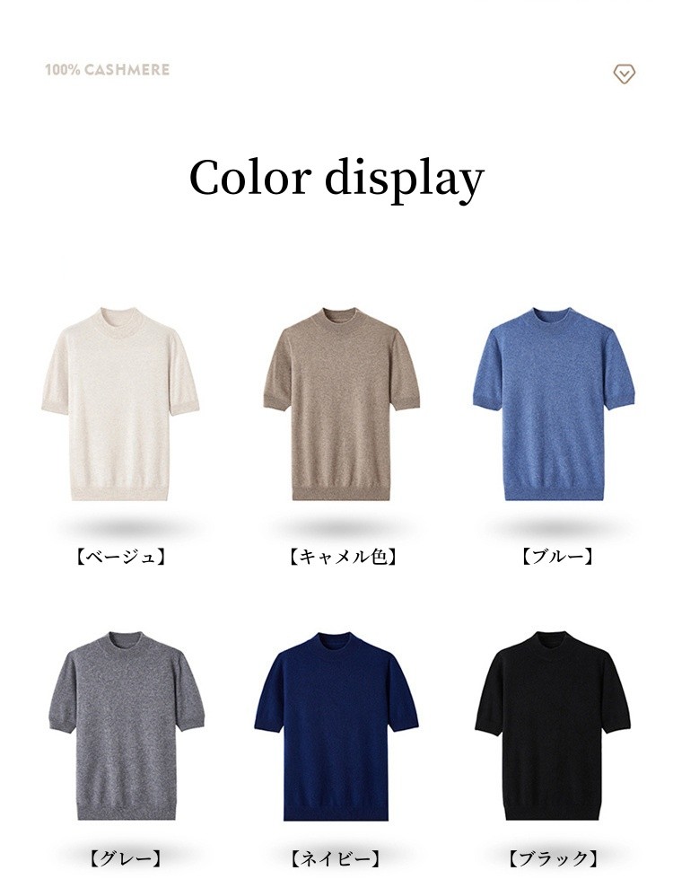 カシミヤ100% プルオーバー 半袖T メンズファッション 人気 M L XL XXL 3XL ベージュ キャメル色 ブルー グレー ネイビー ブラック