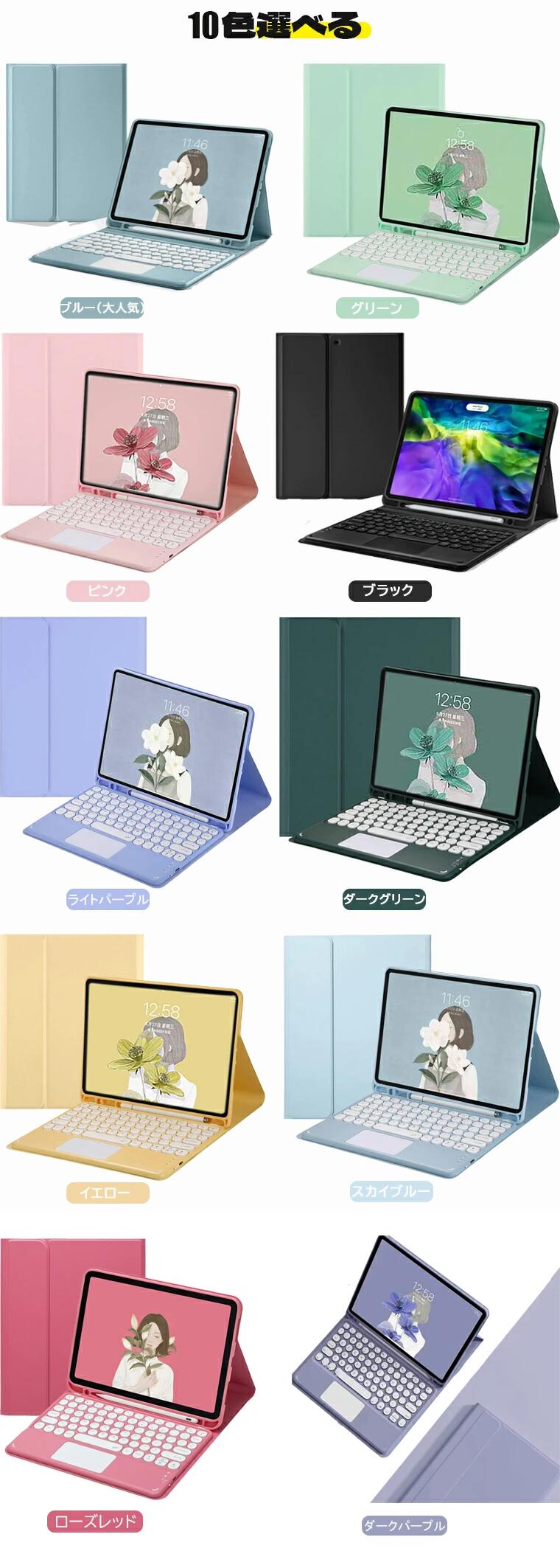ipad ケース 第9世代 キーボード ipad10.2/10.5/air3兼用 (2019) iPad10.9/Pro11インチ兼用 10.9専用air4/air5 iPad 2022 第10世代 10.9インチ ipad9.7/iPad6/5/Air2兼用 Mini4/Mini5/7.9インチ Mini6/8.3インチ Pro12.9インチ (第五世代+1000円) ブルー ローズレッド グリーン ピンク イエロー ブラック ダークグリーン ダークパープル スカイブルー ライトパープル