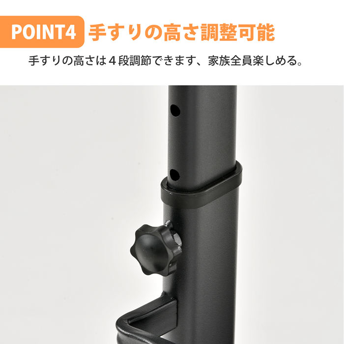 手すりの高さは4段調節できます、家族全員楽しめる。