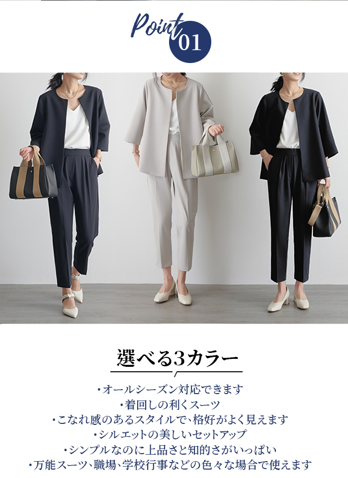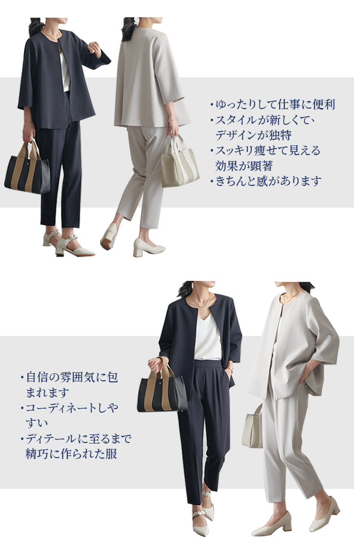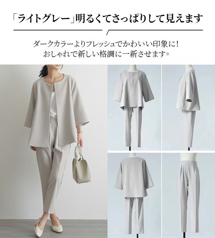 パンツスーツ セミフォーマル レディー レディースファッション 通販 ライトグレー ブラック ネイビー S M L