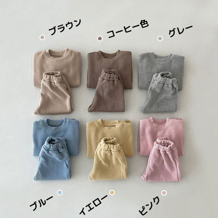 ベビースウェット セットアップ ベビー キッズ ベビー マタニティ 新作 ブラウン コーヒー色 グレー ブルー ピンク 73cm 80cm 90cm 100cm