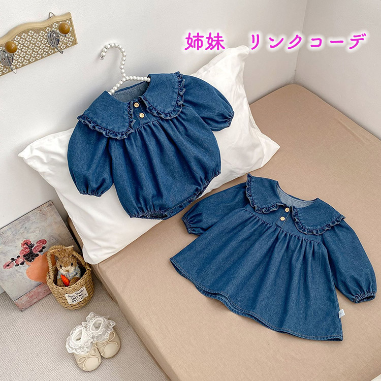 姉妹 リンクコーデ 姉妹お揃い長袖 春 キッズ ワンピース 豊富 ロンパース ワンピース 66cm 73cm 80cm 90cm 100cm 110cm 120cm