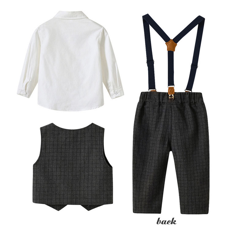 ブラウン/ダークグレー/コーヒー:4点セット(シャツ+ズボン+ベスト+サスペンダー