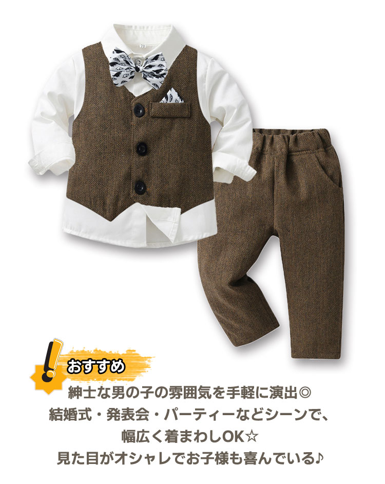 子供スーツ フォーマル 男の子 子供服 キッズ ベビー マタニティ 豊富な品揃え 1.ブラウン 2.ダークグレー 3.コーヒー 4.ホワイト 70cm 80cm 90cm 100cm 110cm 120cm 130cm 140cm 150cm 160cm