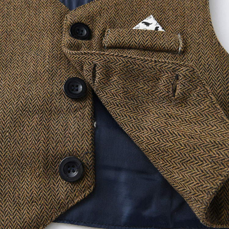 【130cm】ベスト肩幅26cm バスト34cm 丈34cm シャツ丈47cm 肩幅30cm バスト36cm 袖丈36cm ズボン丈68cm