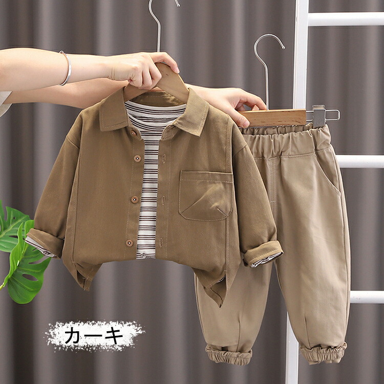 キッズファッション 男の子 春秋 セッ キッズ ベビー マタニティ 続々登場 ホワイト カーキ 80cm 90cm 100cm 110cm 120cm