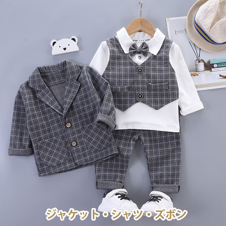 ベビースーツ 男の子 3点セット 男の キッズ ベビー マタニティ 早い者勝ち グレー ブラウン 80cm 90cm 100cm 110cm 120cm
