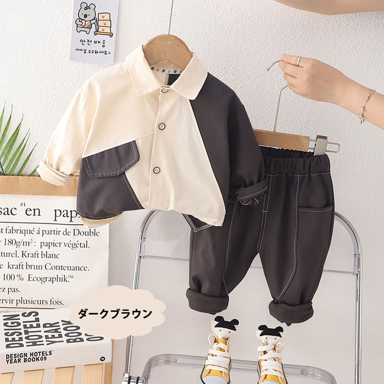 2点セット キッズ スーツ 男の子 カ キッズ スーツ カジュアルセットアップ カジュアルパンツセット 続々登場 ダークブラウン ネイビー 80cm 90cm 100cm 110cm 120cm
