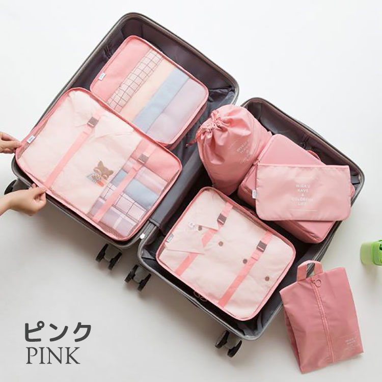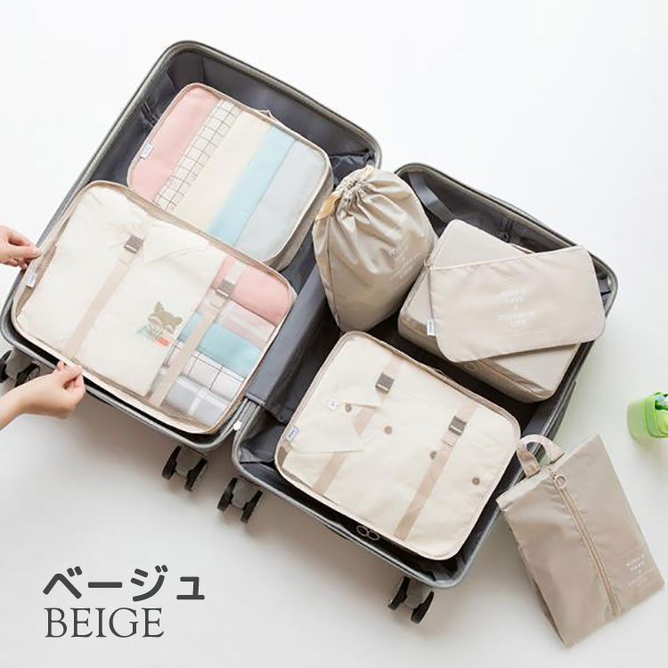 トラべルポーチ セット 7点セット ア 旅行用品 トラベルポーチ パッキングオーガナイザー 人気 ベージュ ピンク ブルー ネイビー グレー ブラック