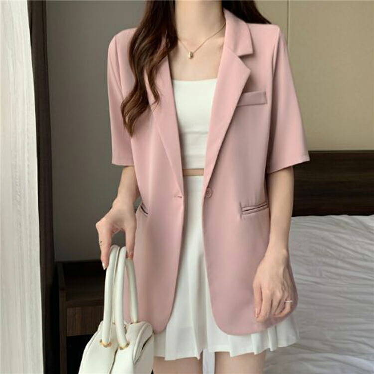 サマージャケット 半袖 ジャケット レ レディースファッション 豊富な品揃え ホワイト ブラック ベージュ ピンク S M L
