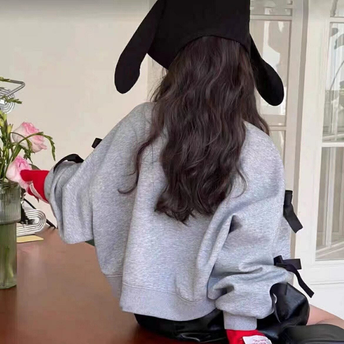 シアースリーブ ドッキングシャツ ボウタイシャツブラウス