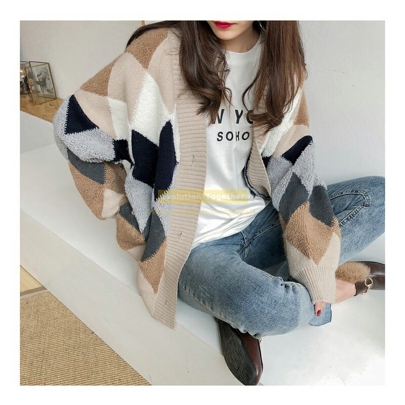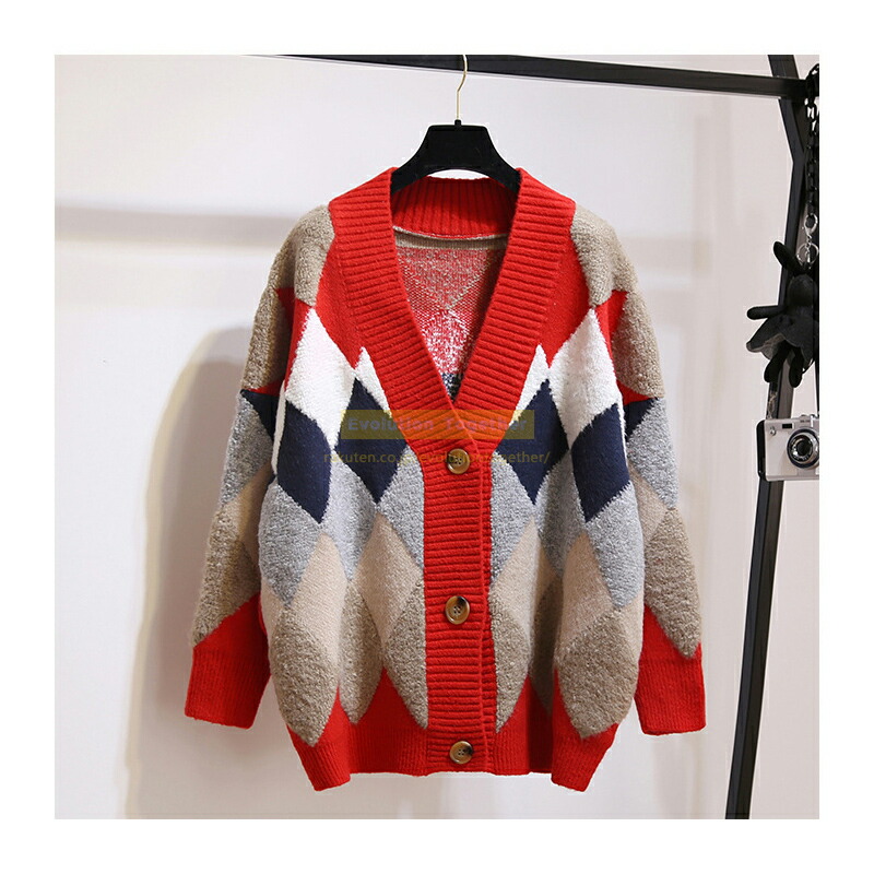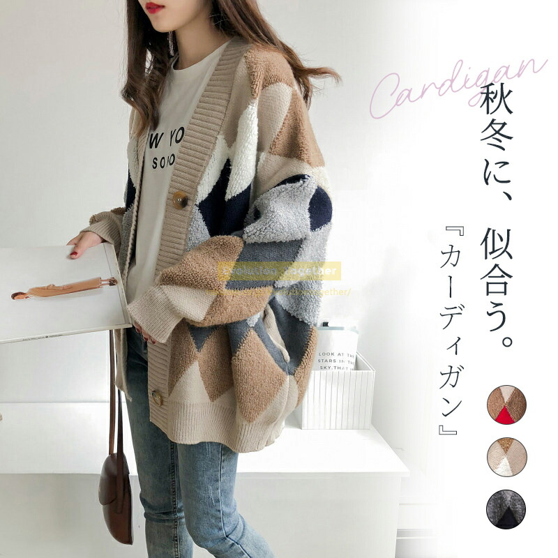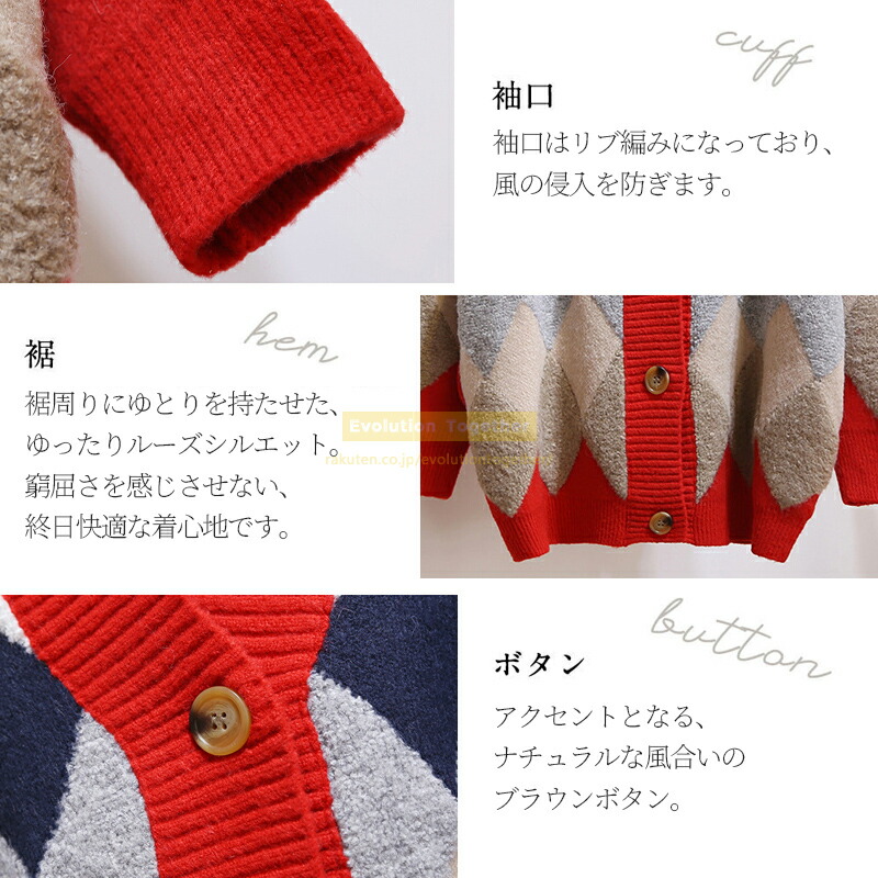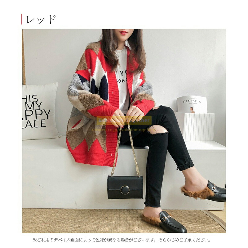 チェック カーディガン レディース 冬 レディースファッション 早い者勝ち レッド カーキ ネイビー