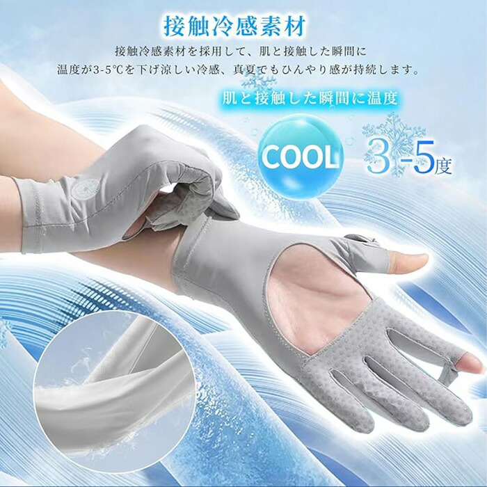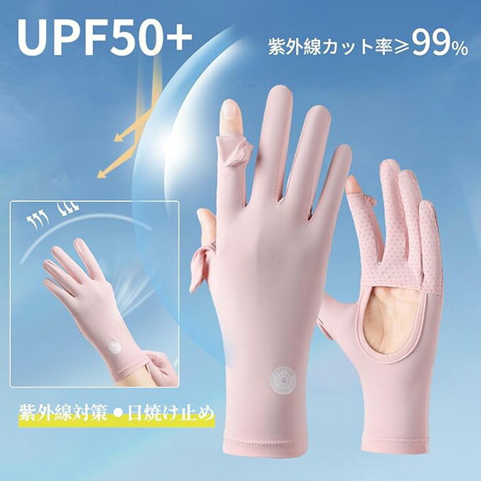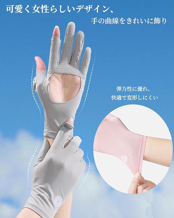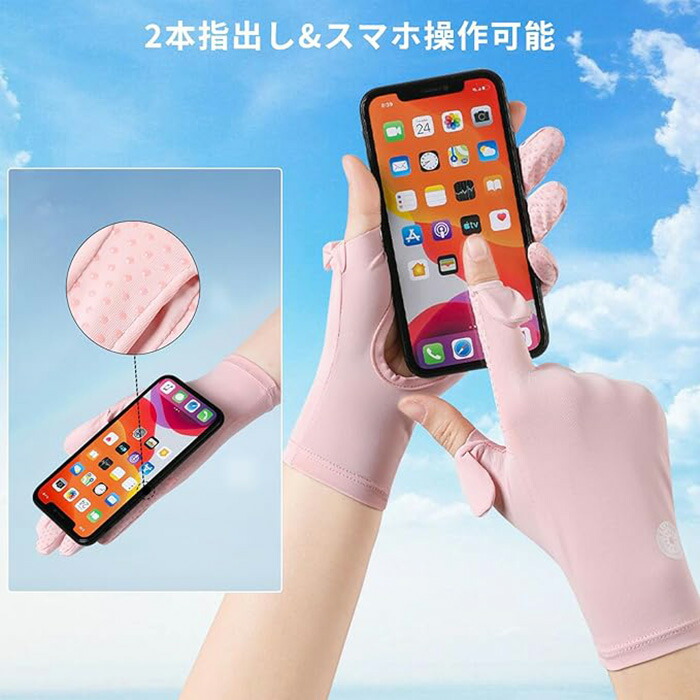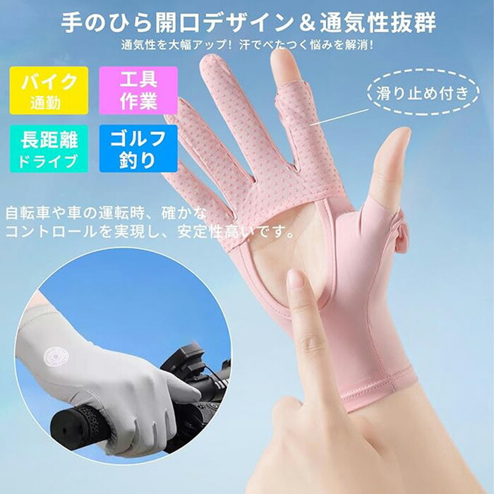 uvカット 手袋 レディース 夏 特許手のひら開口デザイン 2本指出し スマホ対応 -5℃冷感 UPF50+ 滑り止め 通気 日焼け止め手袋 手荒れ 紫外線対策 グローブ 軽量 ゴルフ 自転車 薄手
