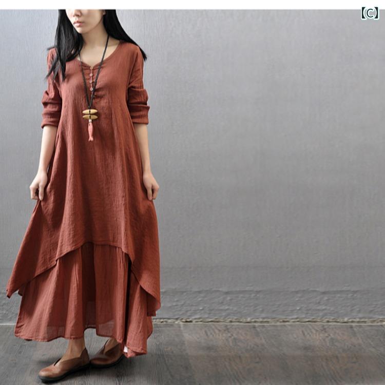 ロングスカート 綿混素材 亜麻 新型の レディースファッション 人気 A:ホワイト B:黒 C:レンガ赤 D:ウコンイエロー E:ワインレッド M L XL 2XL 3XL 4XL 5XL