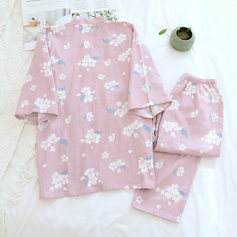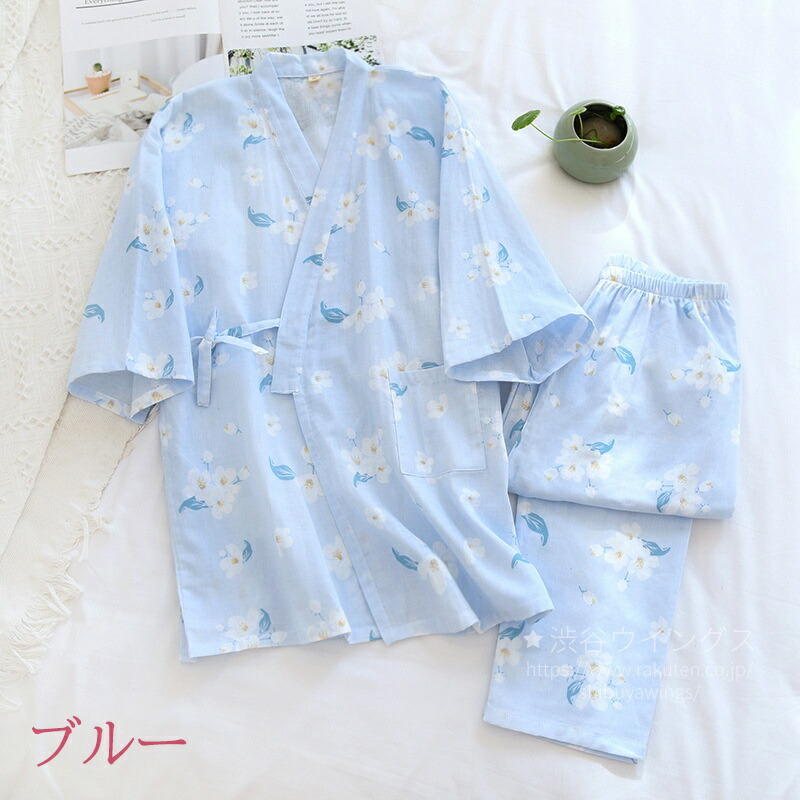パジャマ ガーゼ 和風 花柄 レディー レディース ナイトウェア ルームウェア パジャマ 新登場! ピンク ブルー カーキ M L XL