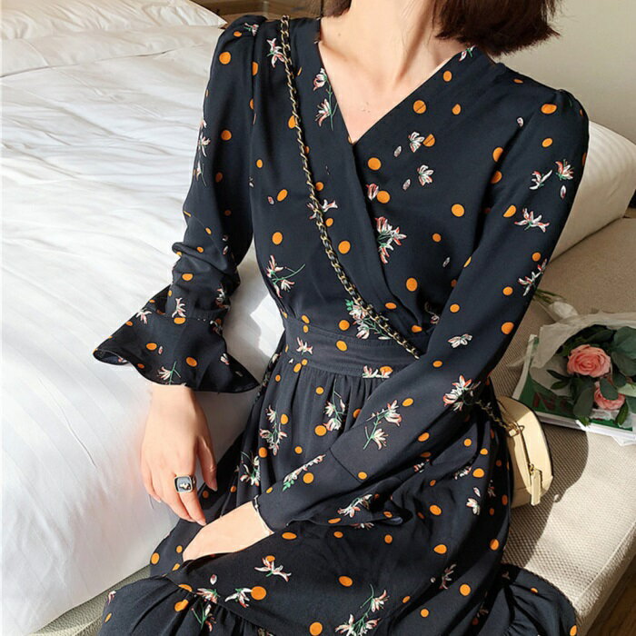 ワンピース 春 きれいめ 春コーデ 春ワンピ カジュアル 韓国ファッション L M 長袖 ガーリーコーデ カシュクール ティアード 花柄 ロング ドレス ぽっちゃり 大人カジュアル 結婚式