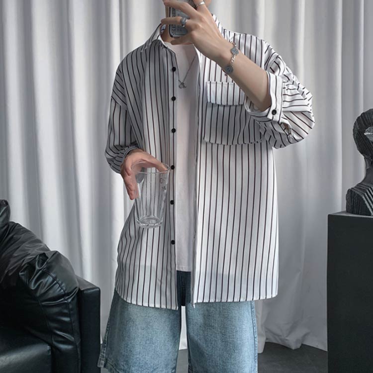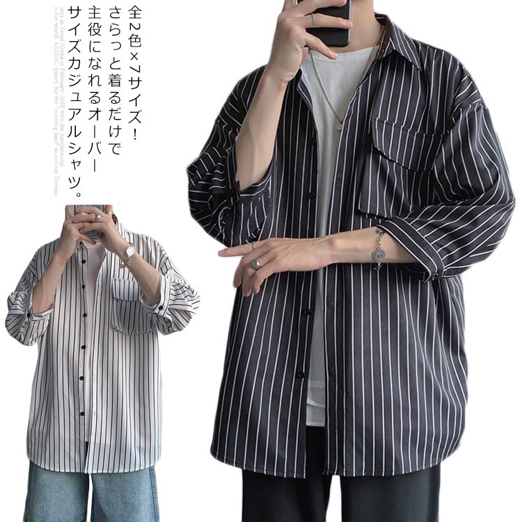 全2色×7サイズ ストライプ柄シャツ メンズファッション 早い者勝ち ブラック ホワイト M L XL 2XL 3XL 4XL 5XL