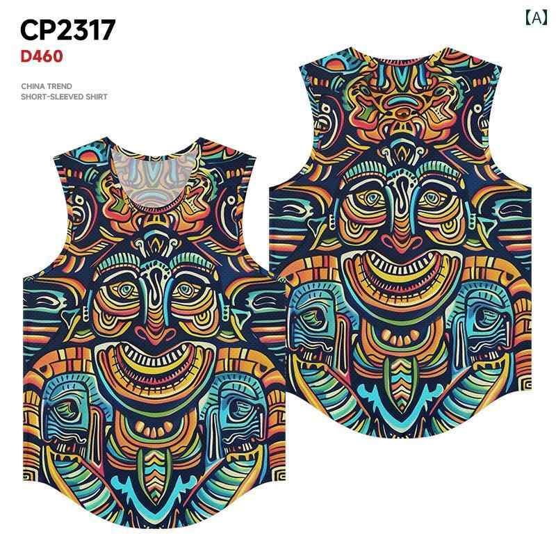 メンズ タンクトップ カラフル 夏 エスニック 派手 個性的 アート カジュアル アメリカン ラウンドネック 南国 トップス