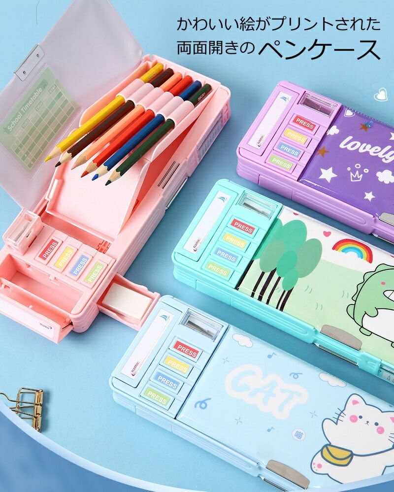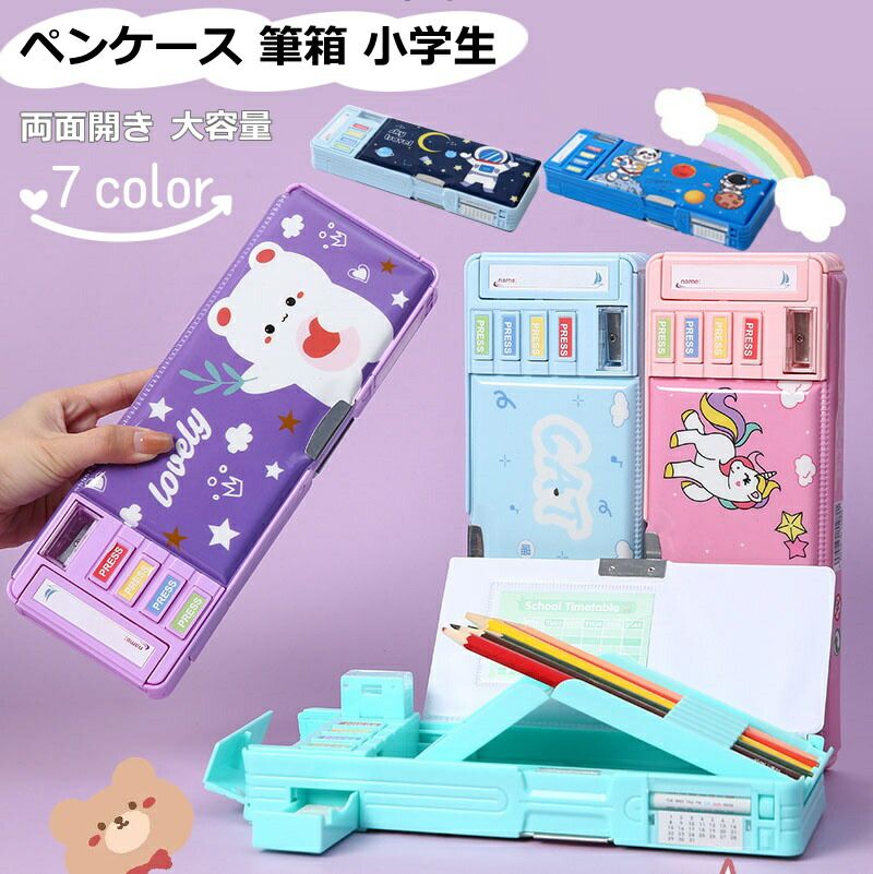 筆箱 多機能 ペンケース 両面開き 小 文房具 事務用品 筆記具 ペンケース 人気 グリーン ピンク馬 パープル ピンク女の子 ブルー ネイビー ブルー猫