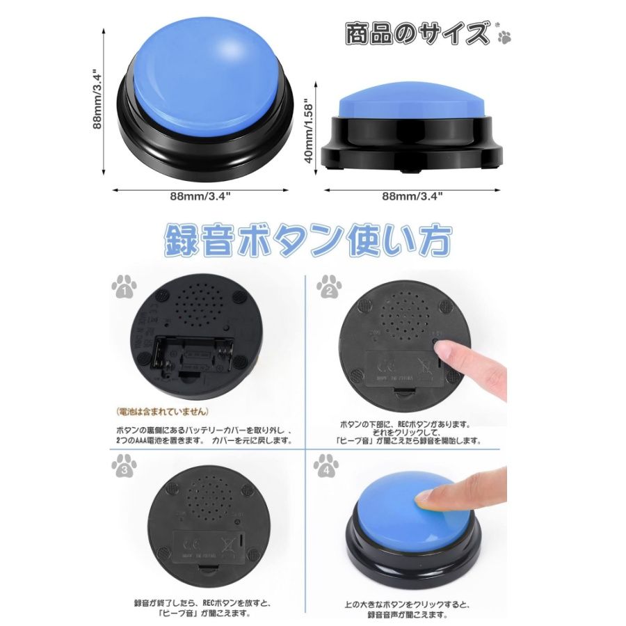 犬会話ボタン各ボタンには2つのAAAバッテリーが必要です。(注:バッテリーはパッケージに含まれていません)
