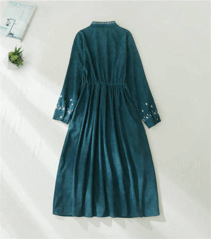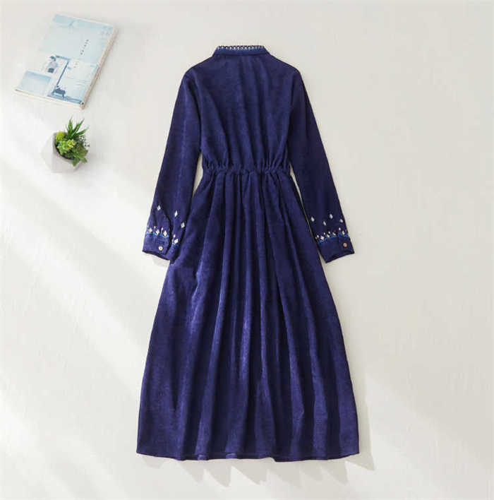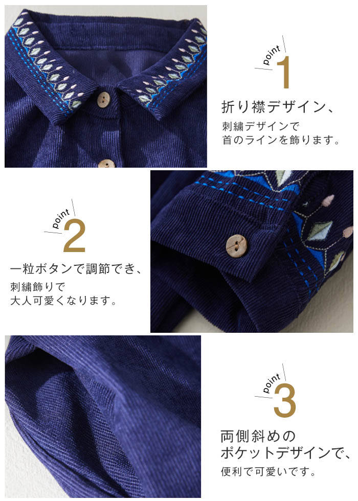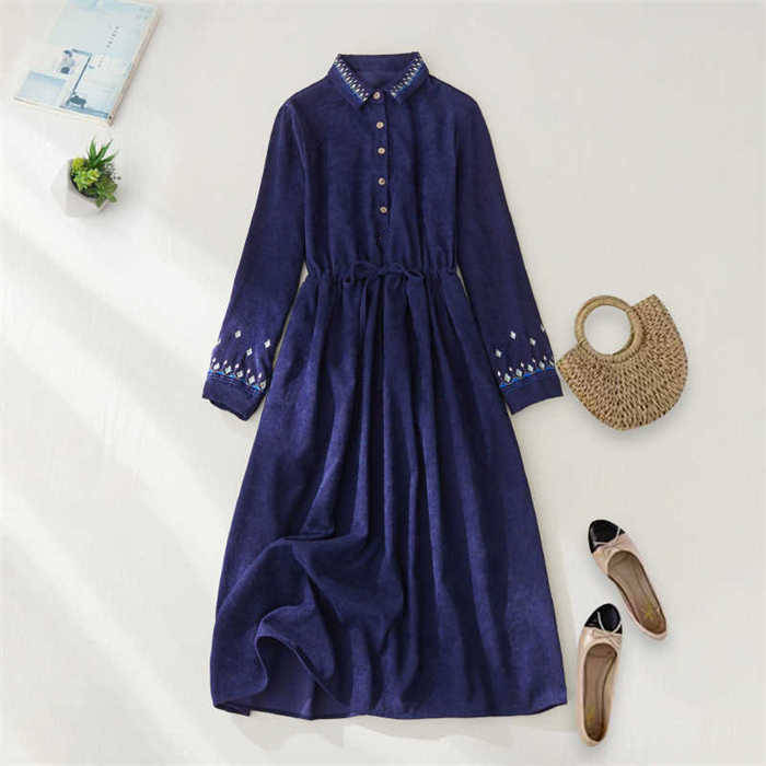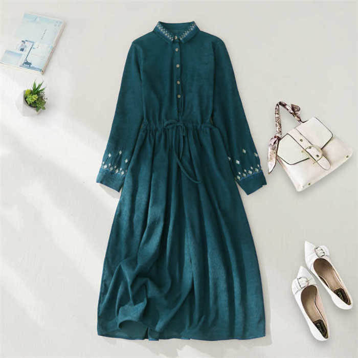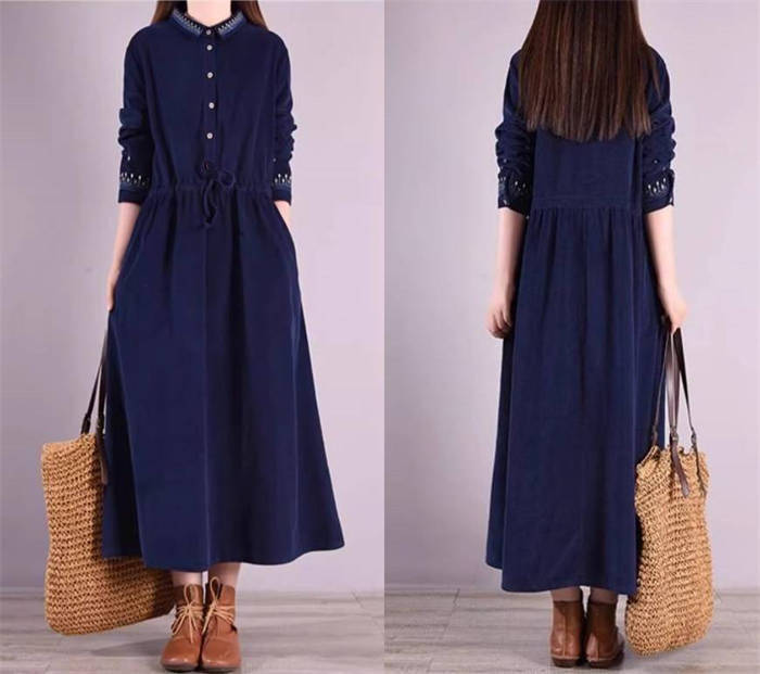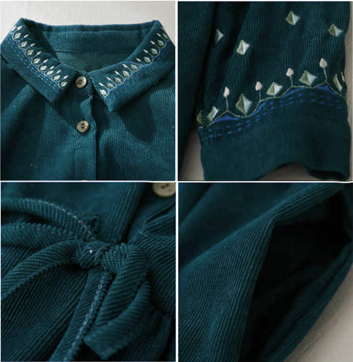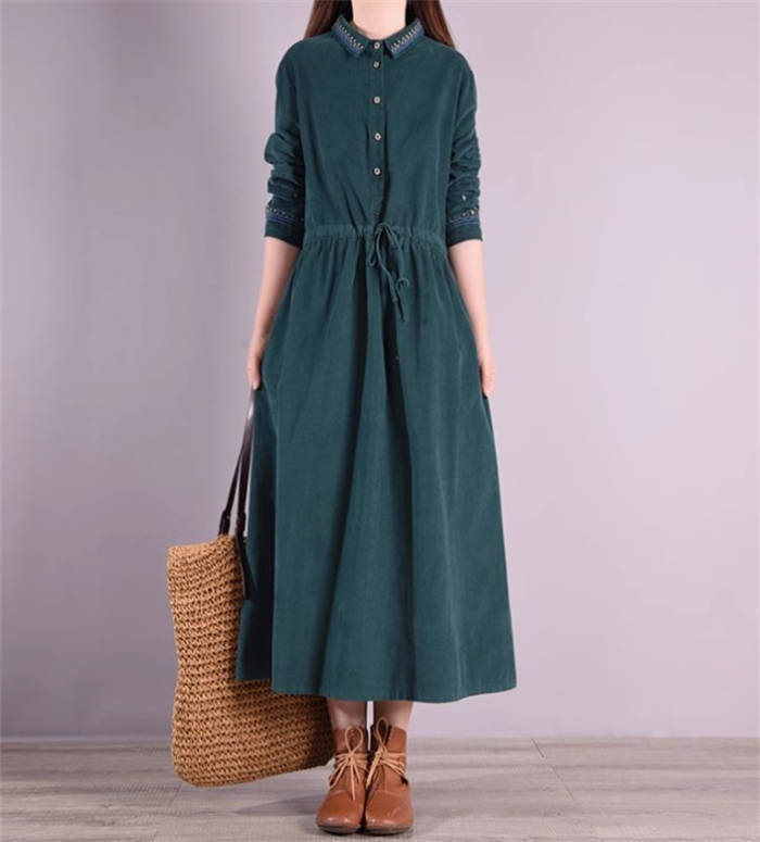 刺繍 コーデュロイワンピース ゆったり ワンピース 続々登場 ブルー グリーン コーヒー色 M L XL 2XL