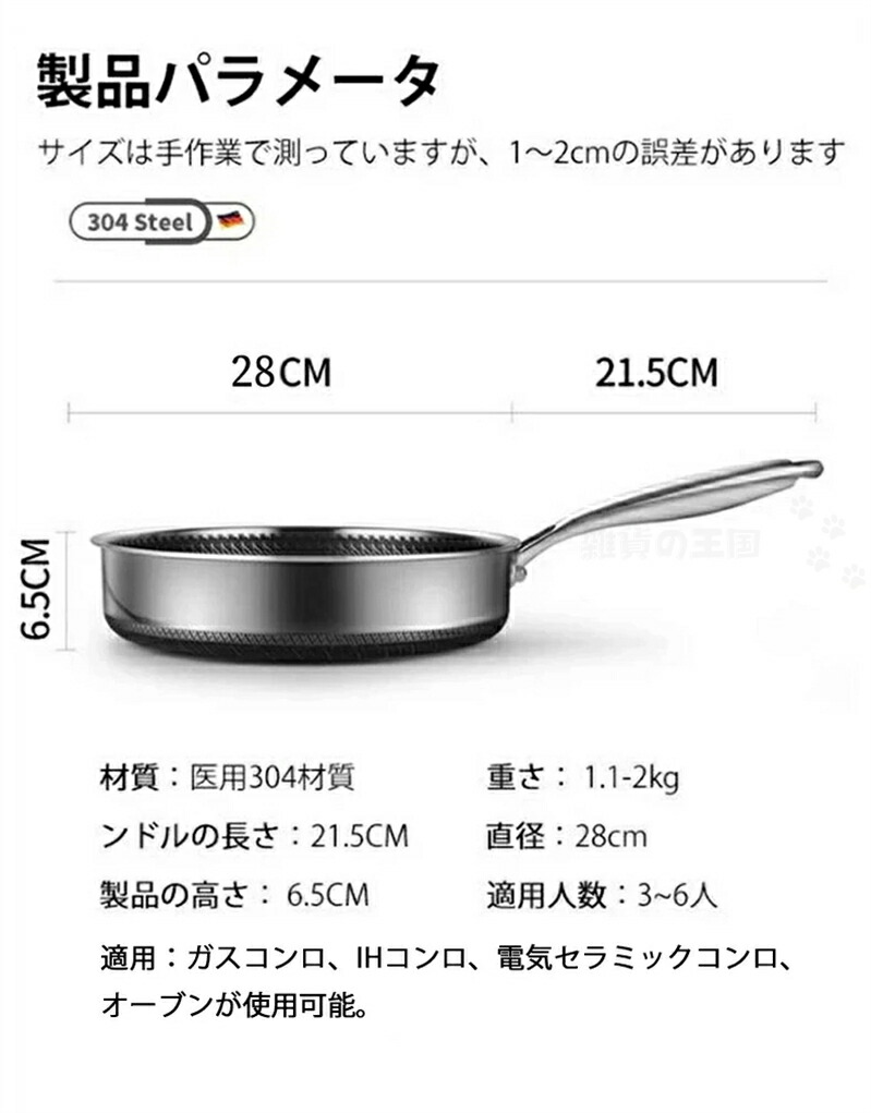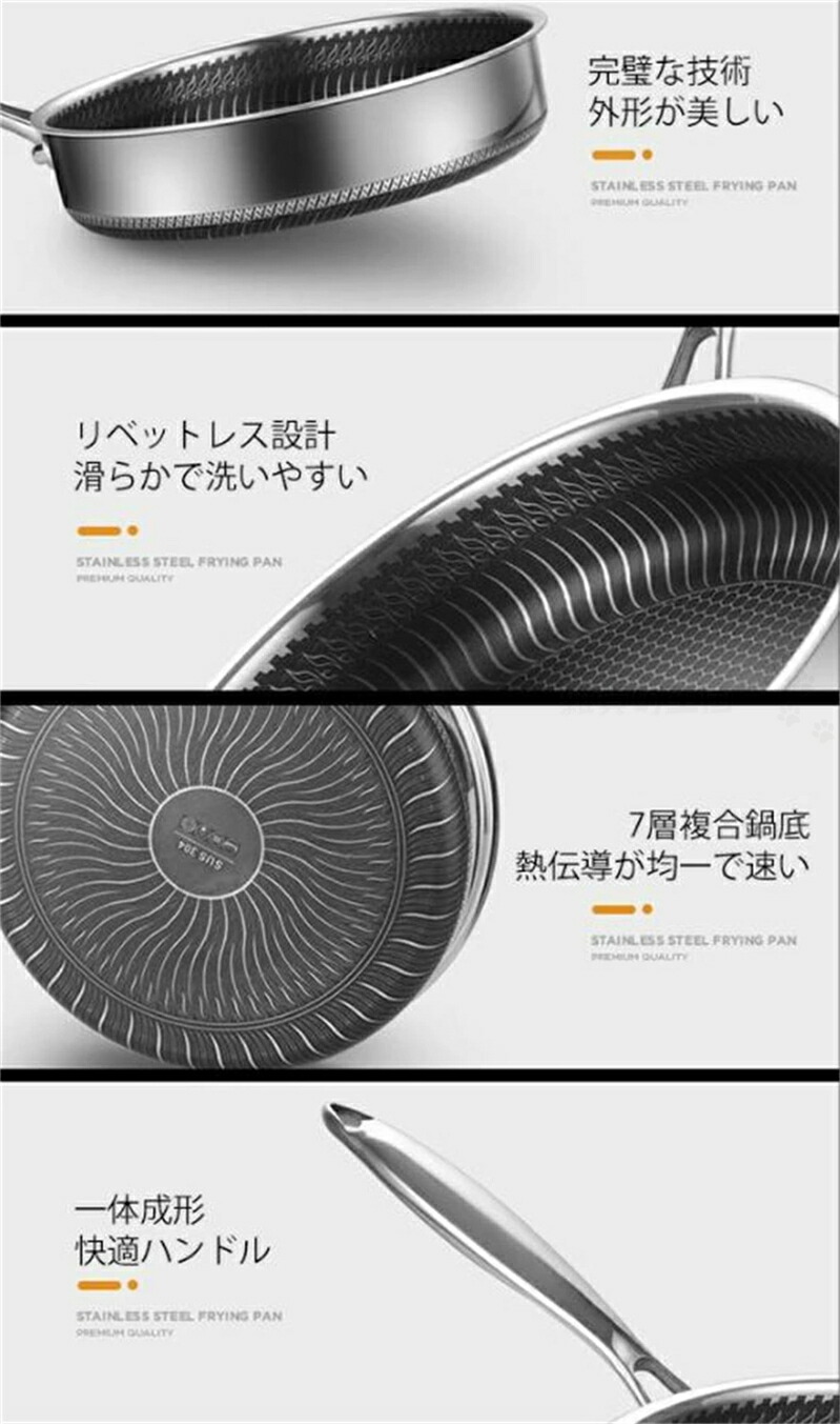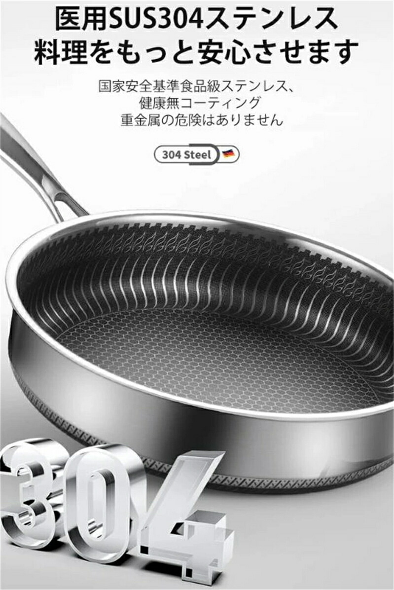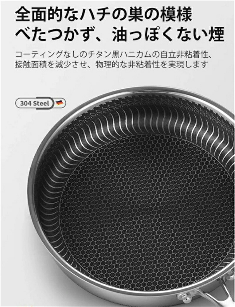 焦げ付き防止304ステンレス鋼フライパン 両面ハニカムステーキポ焦げ付き防止304ステンレス鋼フライパン 両面ハニカムステーキポット 油煙なし鍋 ステンレス鋼調理器具