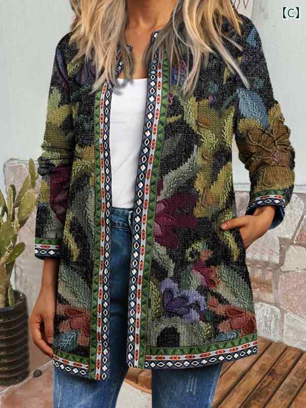 カーディガン レディース 秋冬 長袖 コート ジャケット 豊富な品揃え A:図1 B:図2 C:図3 D:図4 M L XL XXL XXXL 4XL 5XL