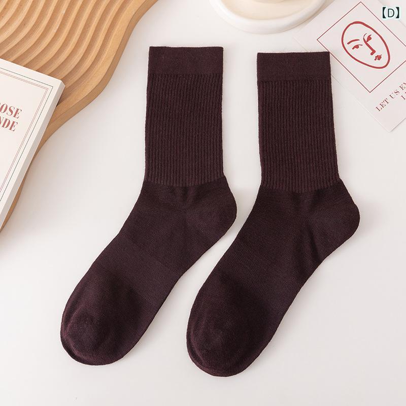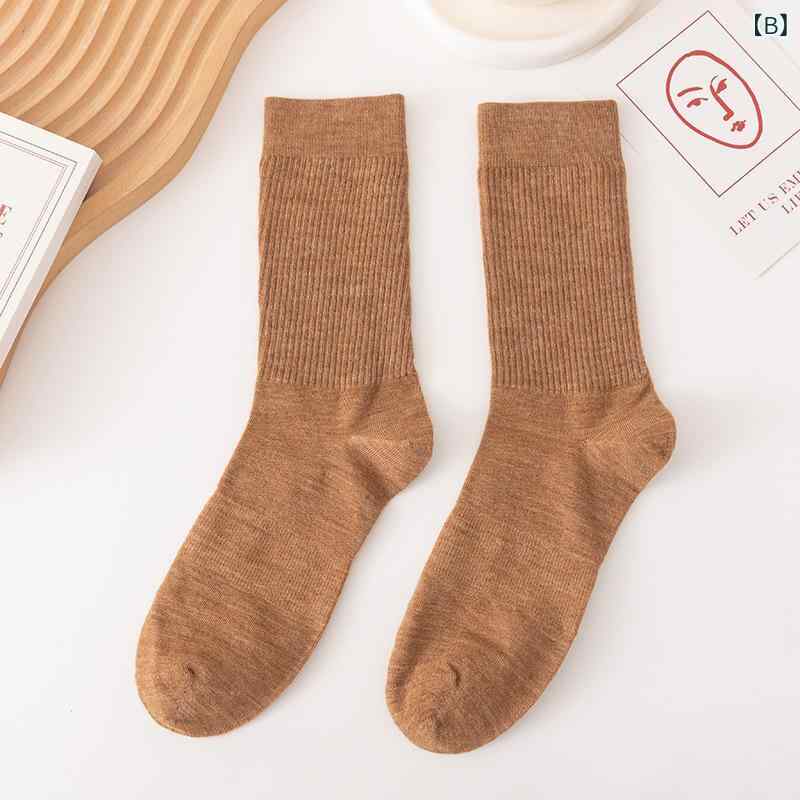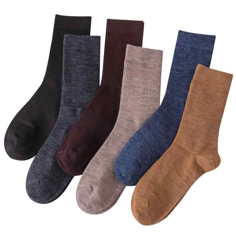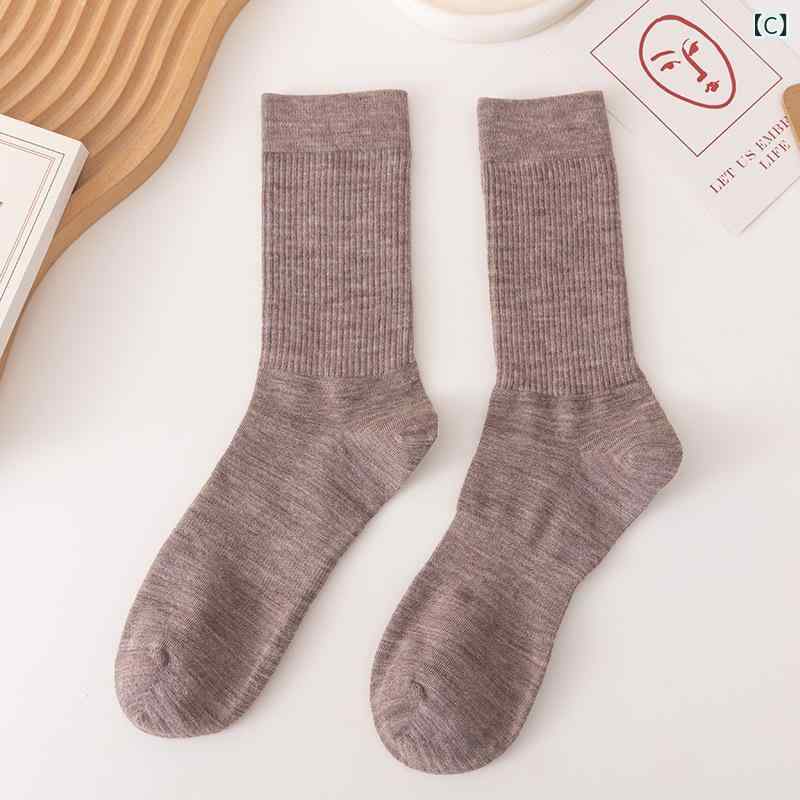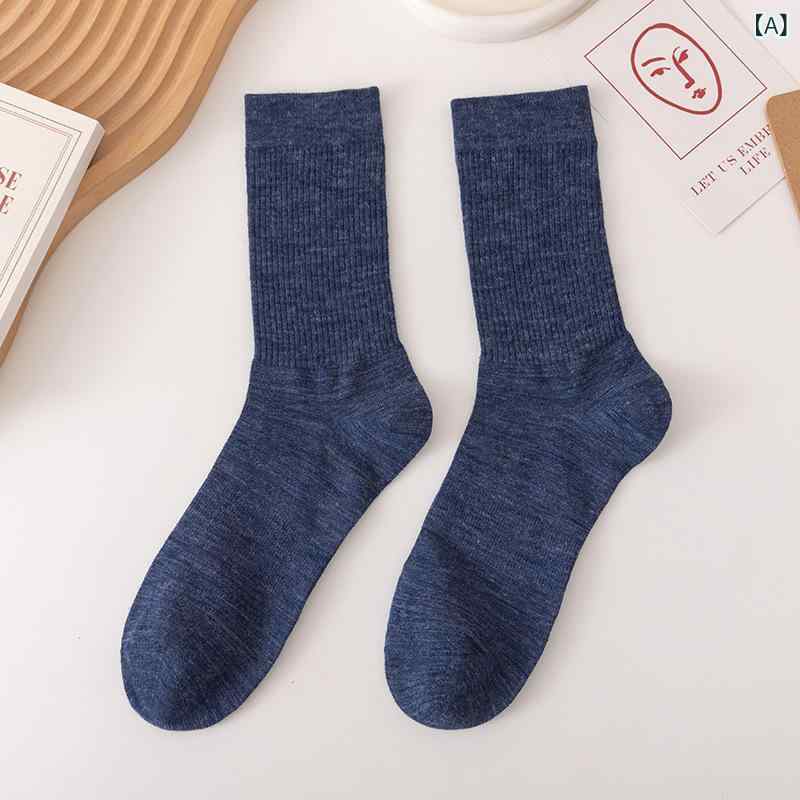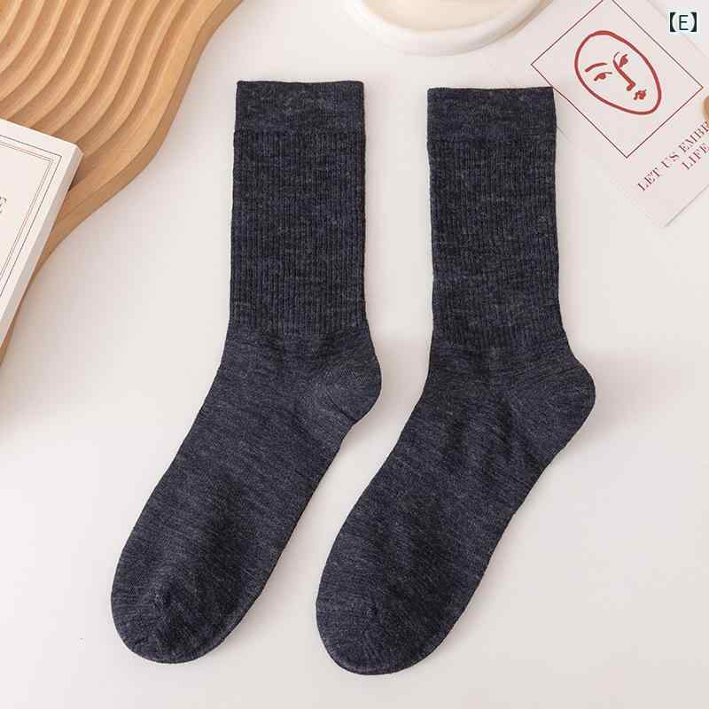 靴下 男性用 メリノウール 秋冬 厚手 保温 吸汗 カジュアル 中筒 ソックス ブルー 姜黄 酒 深灰 ブラック 浅咖