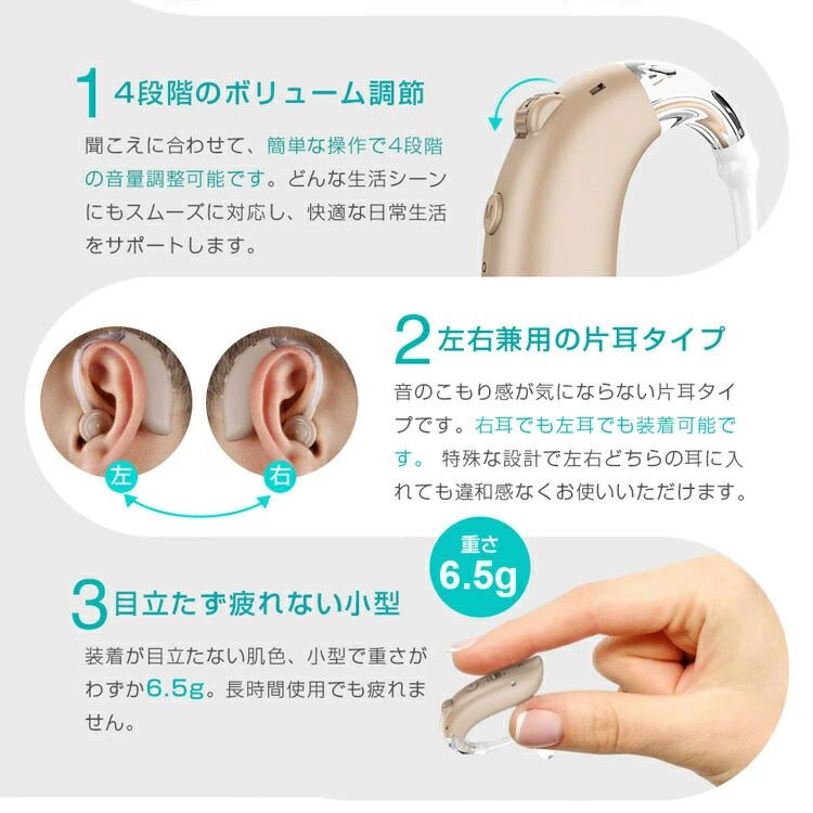 敬老の日 デュアル騒音抑制 4段階のボリューム調節 ハウリング防止 騒音抑制 USB充電式 耳掛け型集音器 クリアで自然な聞こえ 左右兼用
