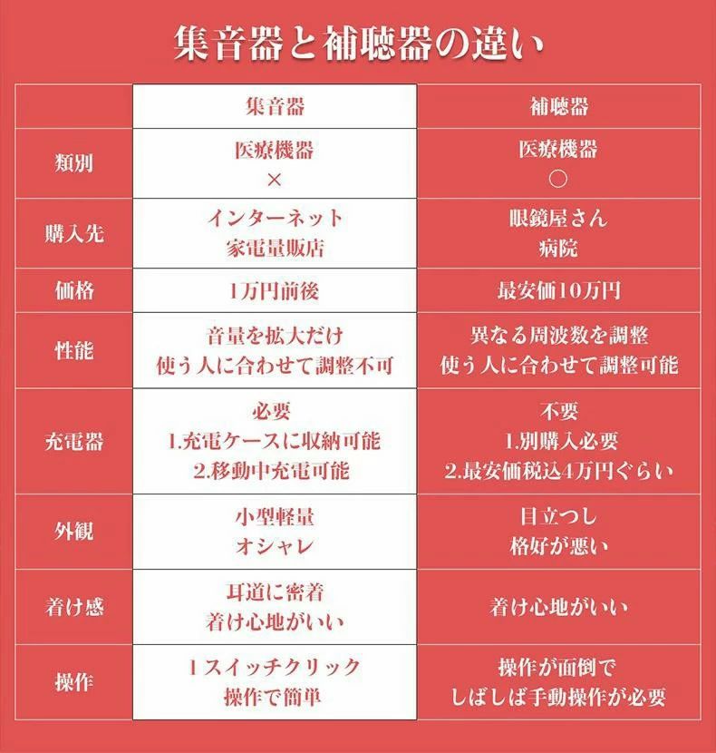 本製品は音を集めて大きくする一般家電の集音器であり、聴覚障碍者の方向けの補聴器ではありません。